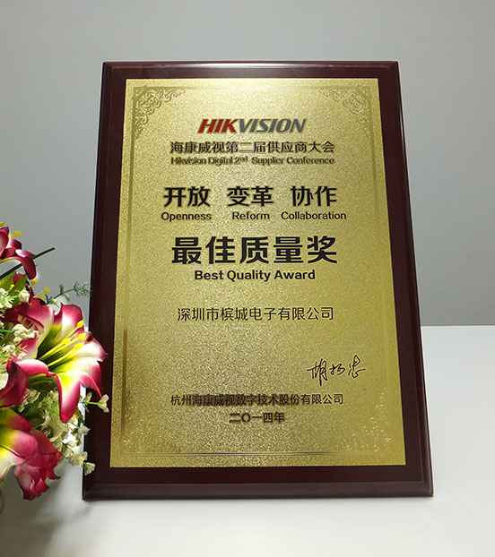 2014年,檳城電子憑借優(yōu)質(zhì)的產(chǎn)品和完善的服務(wù),在海康威視的供應(yīng)商大會上喜獲“最佳質(zhì)量獎(jiǎng)”的榮譽(yù),這對一直在努力的檳城人是一個(gè)莫大的鼓舞,我們的汗水沒有白流,我們付出得到了收獲,全體檳城人將再接再厲,創(chuàng)造出更加美好的明天!