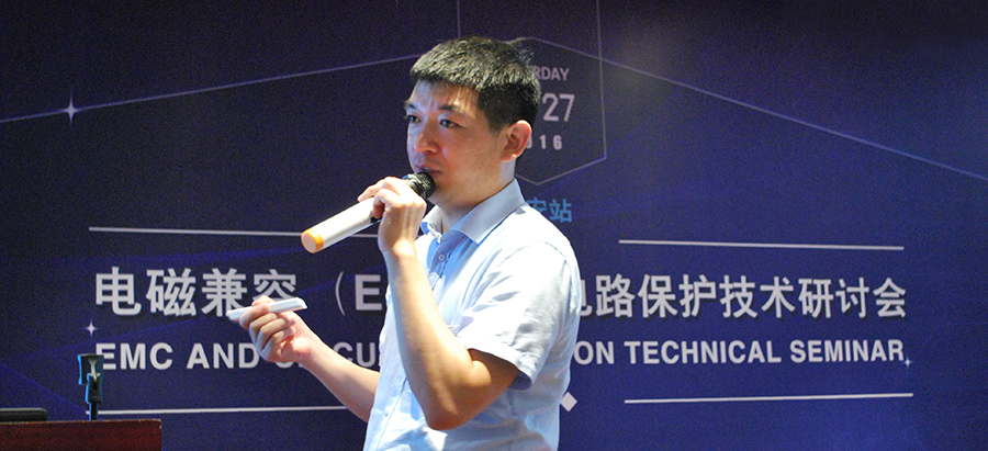 2016年8月27日,由電磁兼容工程師平臺和中國電工技術學會主辦的電磁兼容(EMC)與電路保護技術研討會在古都西安隆重舉行,會場內人氣爆棚,坐無虛席。檳城電子資深技術營銷經理帶給大家的是檳城技術干貨,他詼諧幽默的演講深受大家歡迎,他更是用檳城黑科技這一亮點引爆了會場。