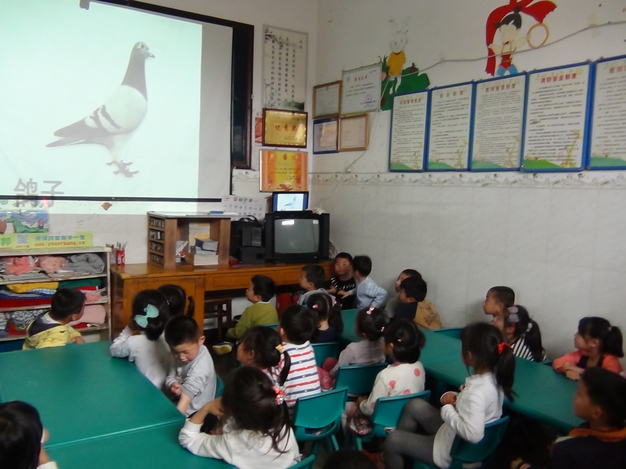 ▲有了筆記本電腦和投影儀,小朋友們的課堂知識(shí)更加豐富多彩