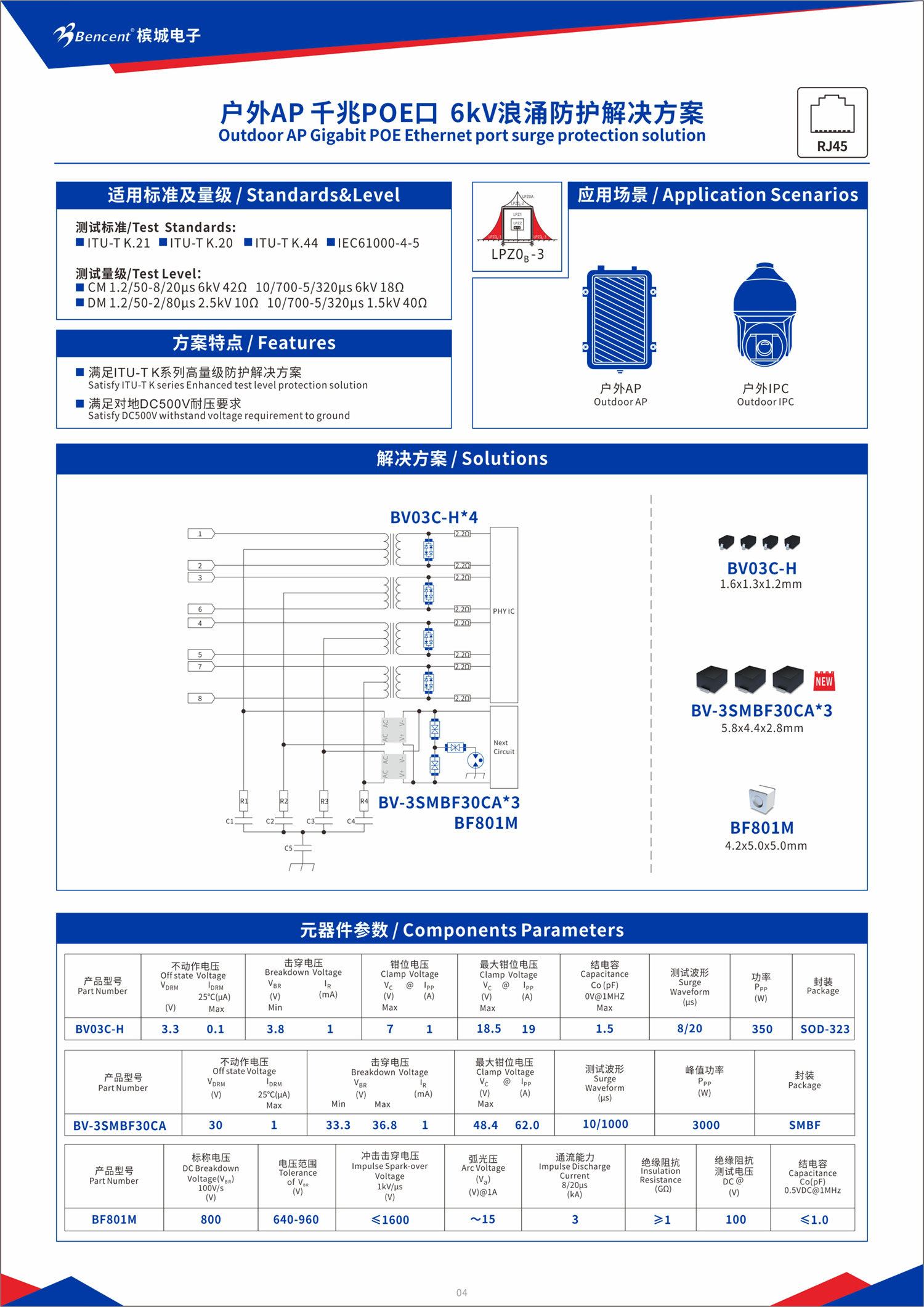 針對(duì)網(wǎng)口的浪涌防護(hù),我們帶來了SMBF系列產(chǎn)品,實(shí)現(xiàn)小體積,大通流的需求: